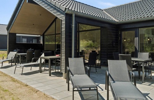 This holiday home in Fjellerup Feriecenter is ideal for large families or groups of friends, with space for up to 16 people. It features six spacious bedrooms and two cosy lofts perfect for kids. The private pool area offers a swimming pool, water slide, whirlpool, and sauna for relaxation. The heart of the home is a large common area with an open kitchen and a long dining table, perfect for gatherings. For entertainment, there\'s an activity room with table tennis, billiards, table football, darts, and a bar. Outdoors, a partially covered terrace with garden furniture and a barbecue is ideal for enjoying warm summer evenings. This holiday home offers much more than just accommodation – it\'s an experience.