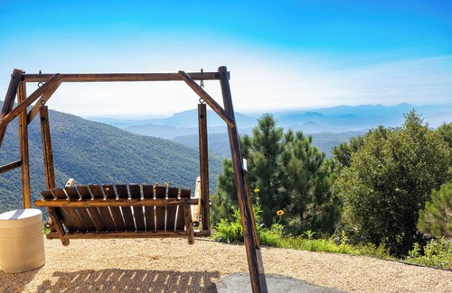 Swing overlooking the peaks — your perfect photo moment