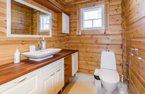 50 km to the northeast from Joensuu, lake Pielinen (871,2 km²). Low, hard and clay-bottomed beach, own boat. Log cabin 2012, living room/kitchen, bedroom with double bed, second bedroom with 2 beds, third bedroom with 2 beds, fireplace room, washroom, wood-heated sauna, utility room, terrace. The rent includes one firewood bag per day, which is enough for a normal 2-3 h sauna and heating the fireplace. If you need more firewood, you can purchase additional firewood (10 €/ large firewood bag). Upon request, the owner can borrow an Internet sim card free of charge. Customer can use it with own devices. Exclusive log-built holiday home by the lake Pielinen. There are 2 fireplaces in the cabin. Shoe washing area in the hall.