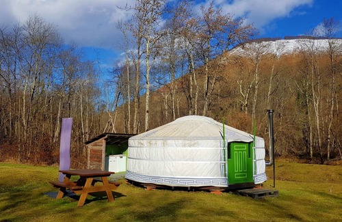 Nuestra propiedad es una pequeña finca fuera de la red rodeada de montañas, bosques y pastizales. En el interior, encontrará una cómoda cama doble, una mesa de centro con chimenea y una estufa de leña para calentar esas noches frías. Se proporciona abundante leña. En el exterior hay una cocina, un aseo, un almacén de madera y una mesa de picnic con una sombrilla. También hay una fogata para cocinar al aire libre cerca de la yurta para que los huéspedes puedan preparar fácilmente una barbacoa si lo desean. En la cocina se incluye té, café y un desayuno básico.
