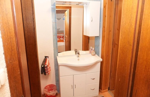 Habitación 5 = habitación de 1 x 4 camas con cama doble y litera, lavabo en la antesala