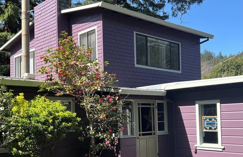 Relájese entre las secoyas de su casa de campo frente al río con un patio de adoquines de ladrillo, una gran terraza con bañera de hidromasaje y ducha al aire libre y un muelle con cinco kayaks. Usted está rodeado con mucha vegetación madura, flores, secoyas majestuosas y árboles frutales en huelga el equilibrio perfecto de sol y sombra.